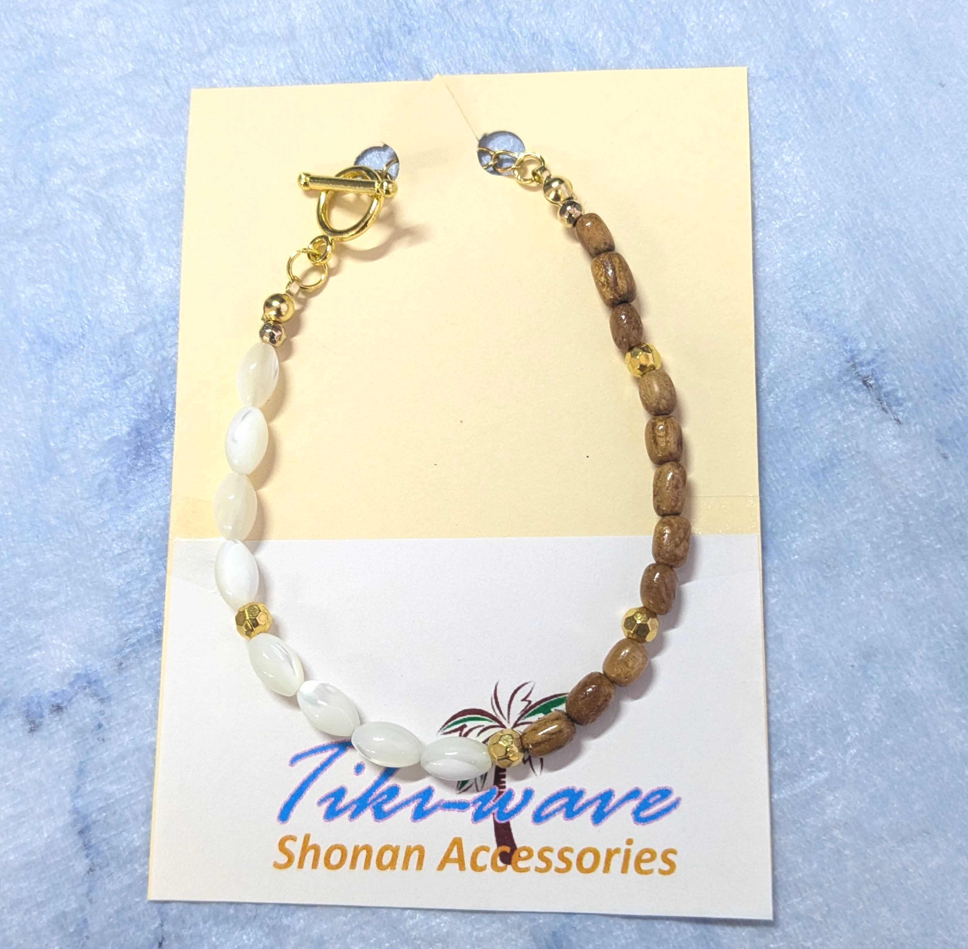 ハワイアンデザインブレス 天然シェル マザーオブパール& ハワイアンコアウッド R-433