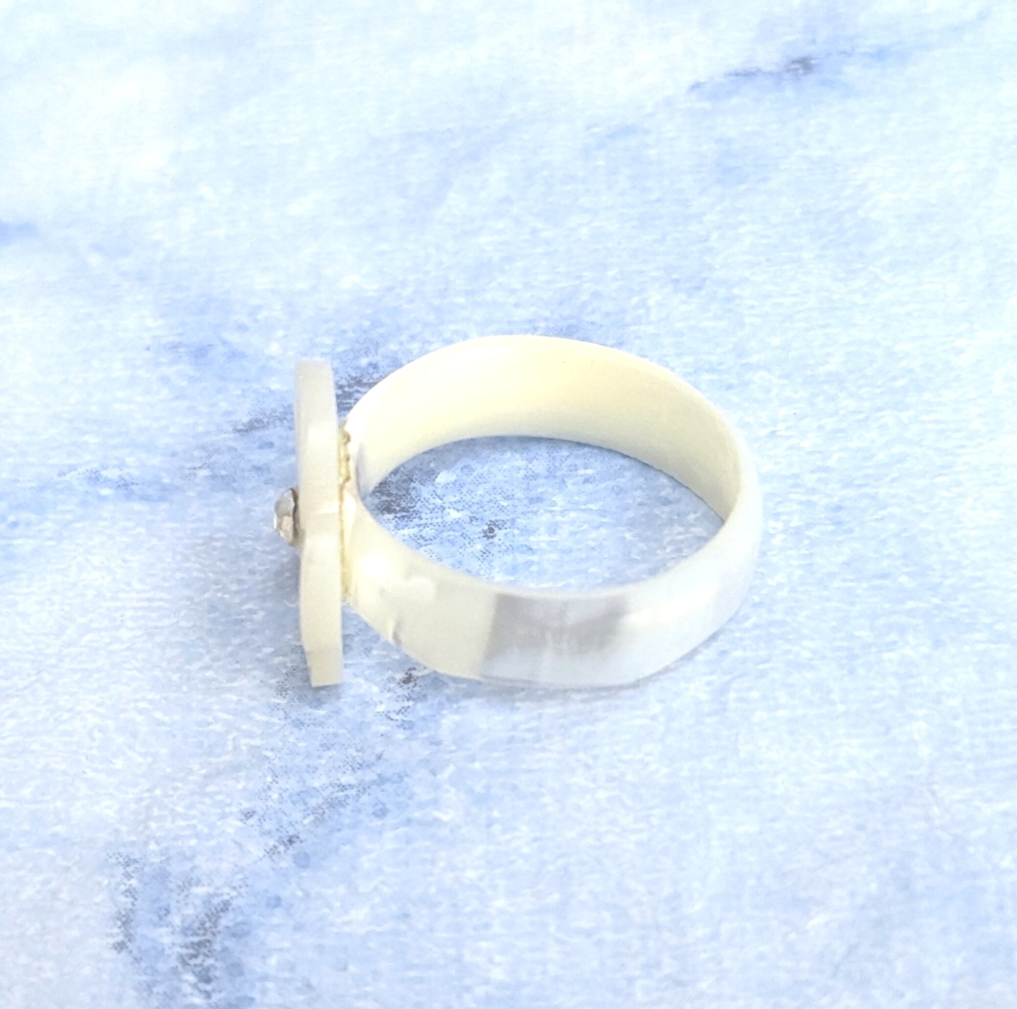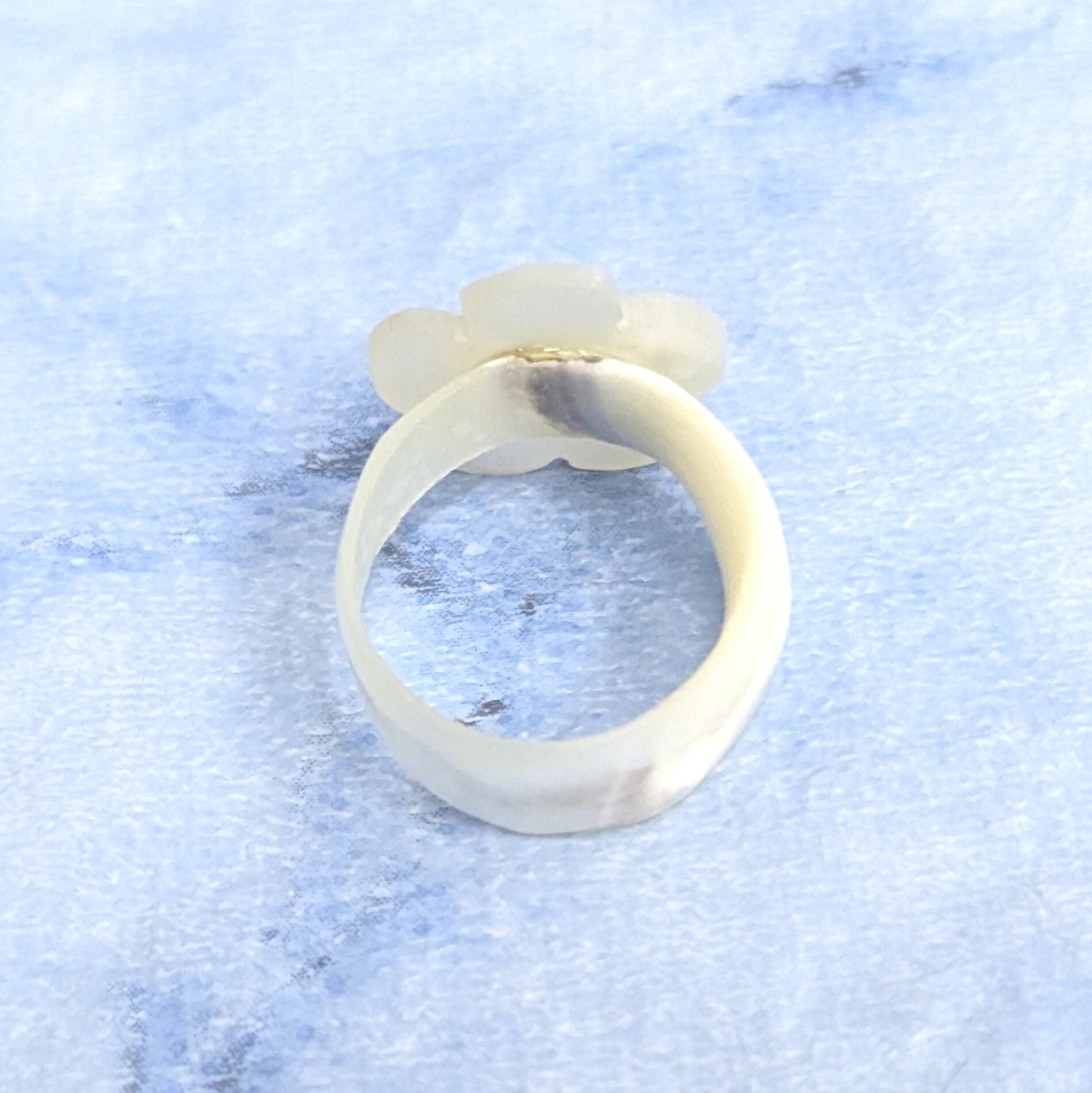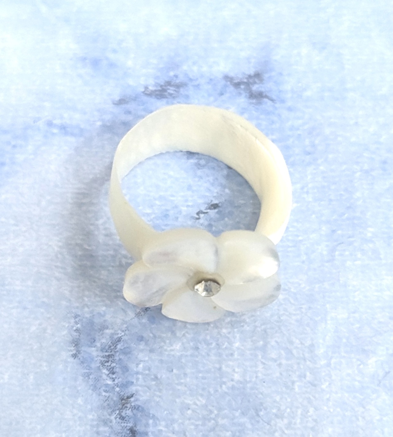 ハワイアンリング ホワイトシェル プルメリアリング 9〜10号 B-203