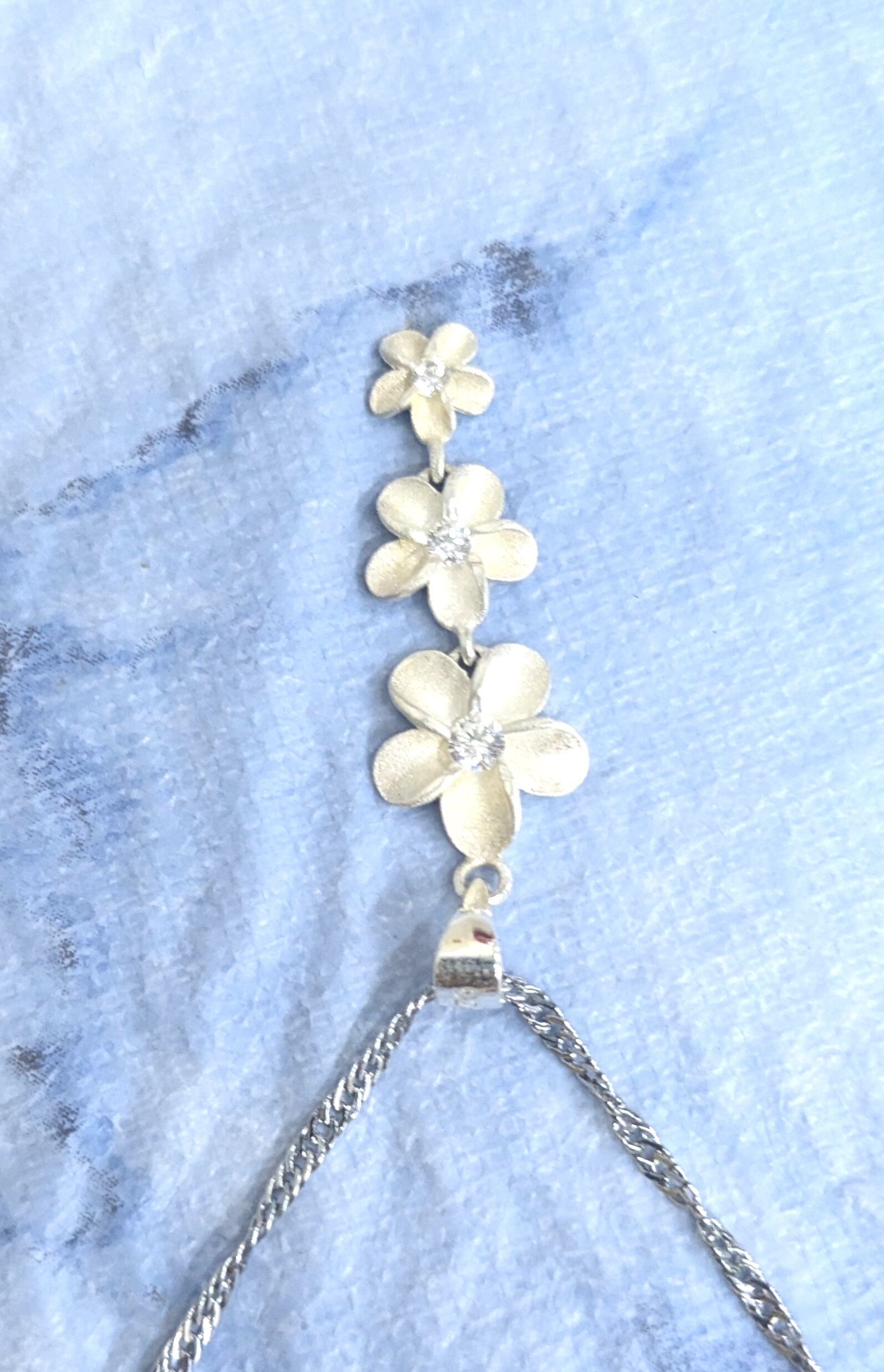 ハワイアンネックレス スターリングシルバー3連 シルバー925 プルメリア P-689