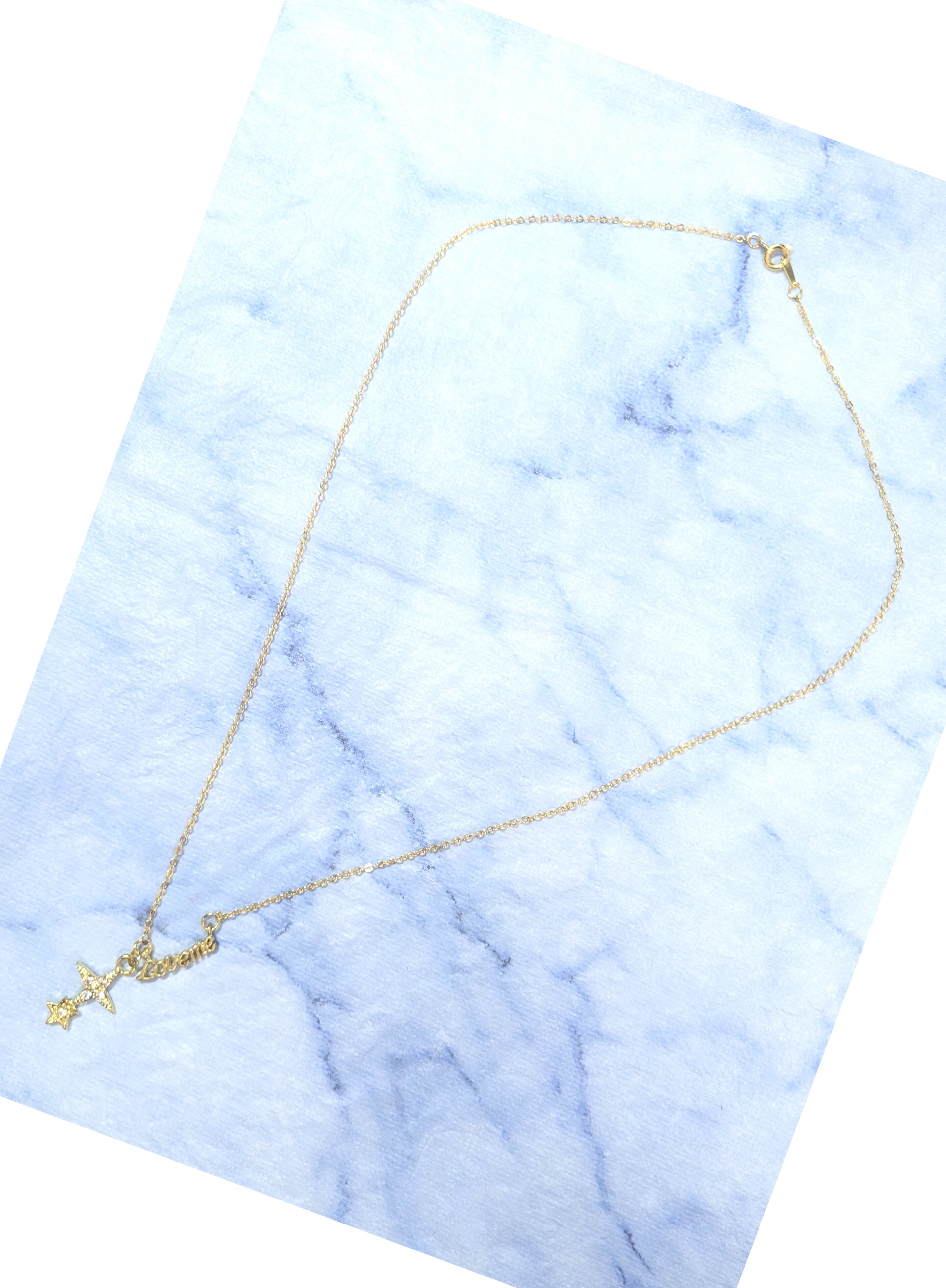 クリスマスネックレス ゴールドカラー クロス&スター CZ Loveme F-909