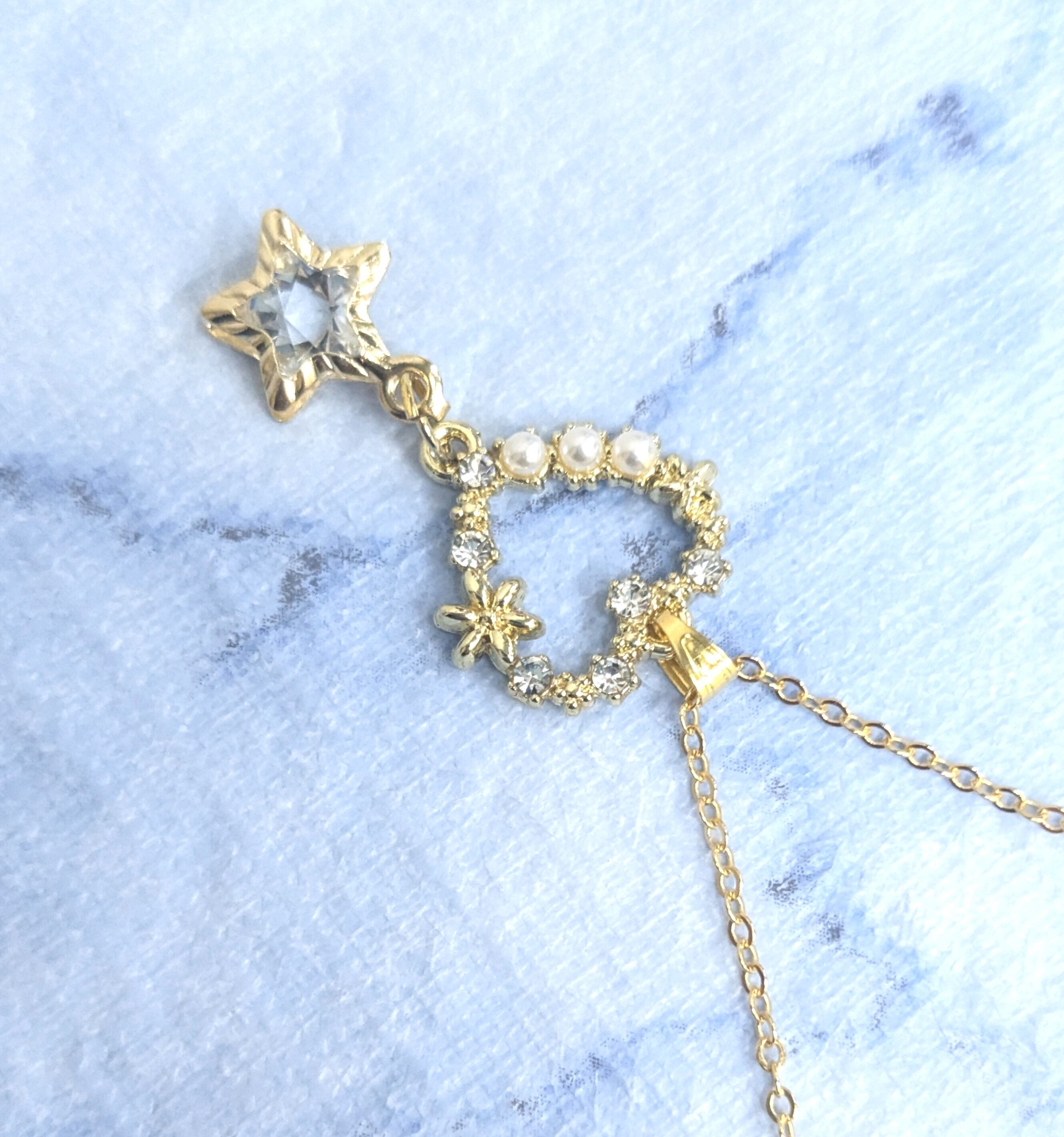 クリスマスネックレス パールゴールド ハート& ジルコニアスター F-910
