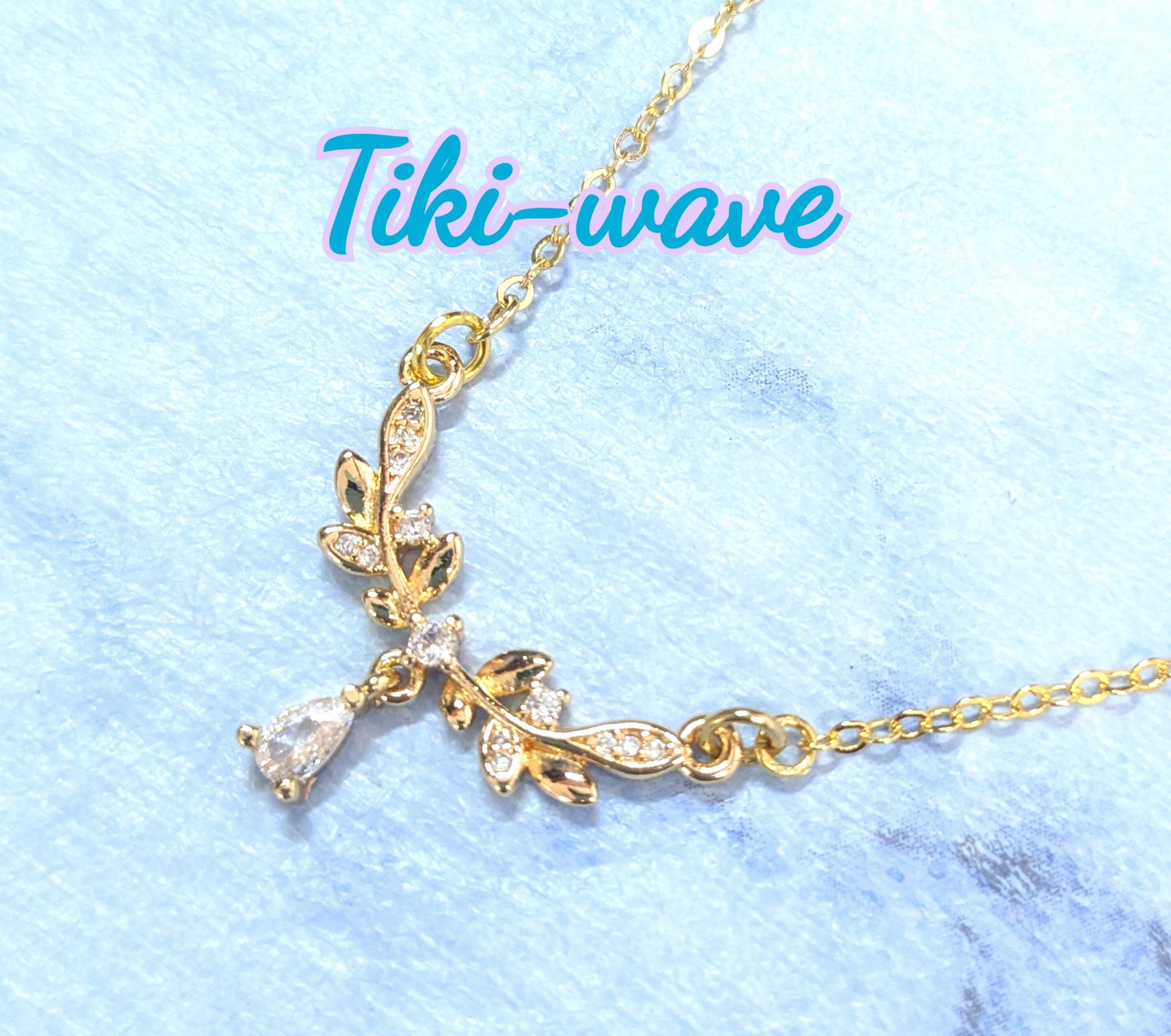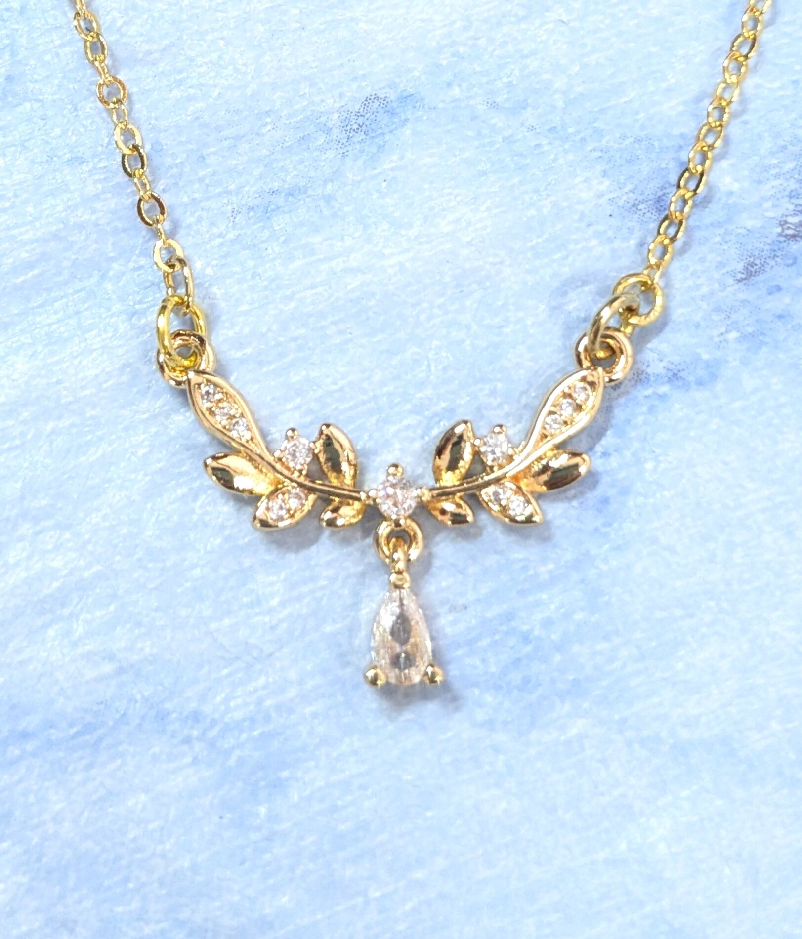レディースネックレス ゴールド ローレルリーフ&ジルコニア ドロップCZ L-864