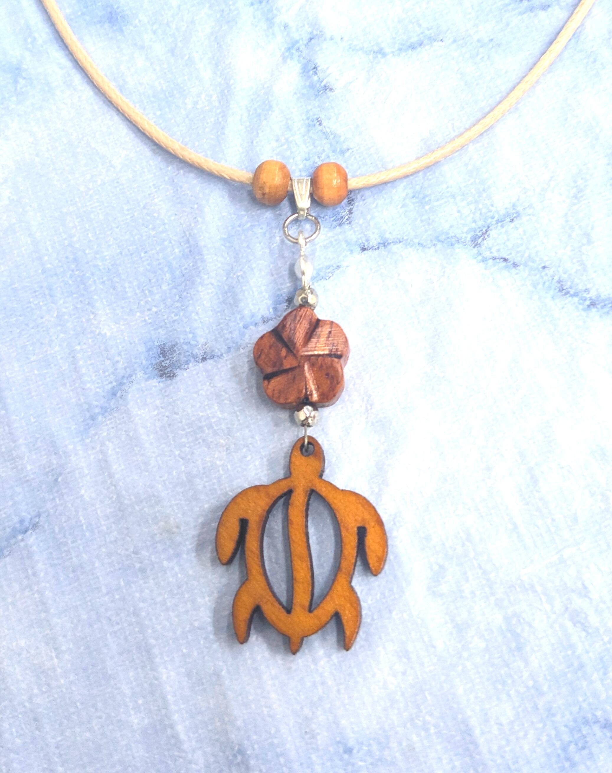 ハワイアンネックレス ハワイアンウッド ホヌ&プルメリア H-211