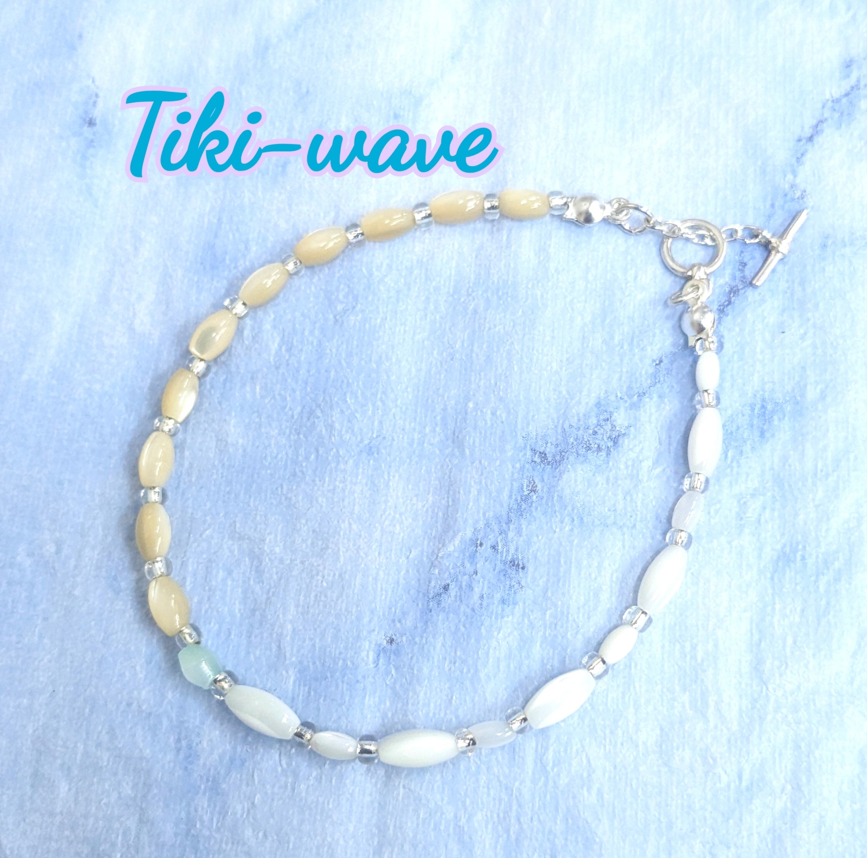 ハワイアンデザインブレス 天然シェル & パールシェル オーバルビーズシェル R-434