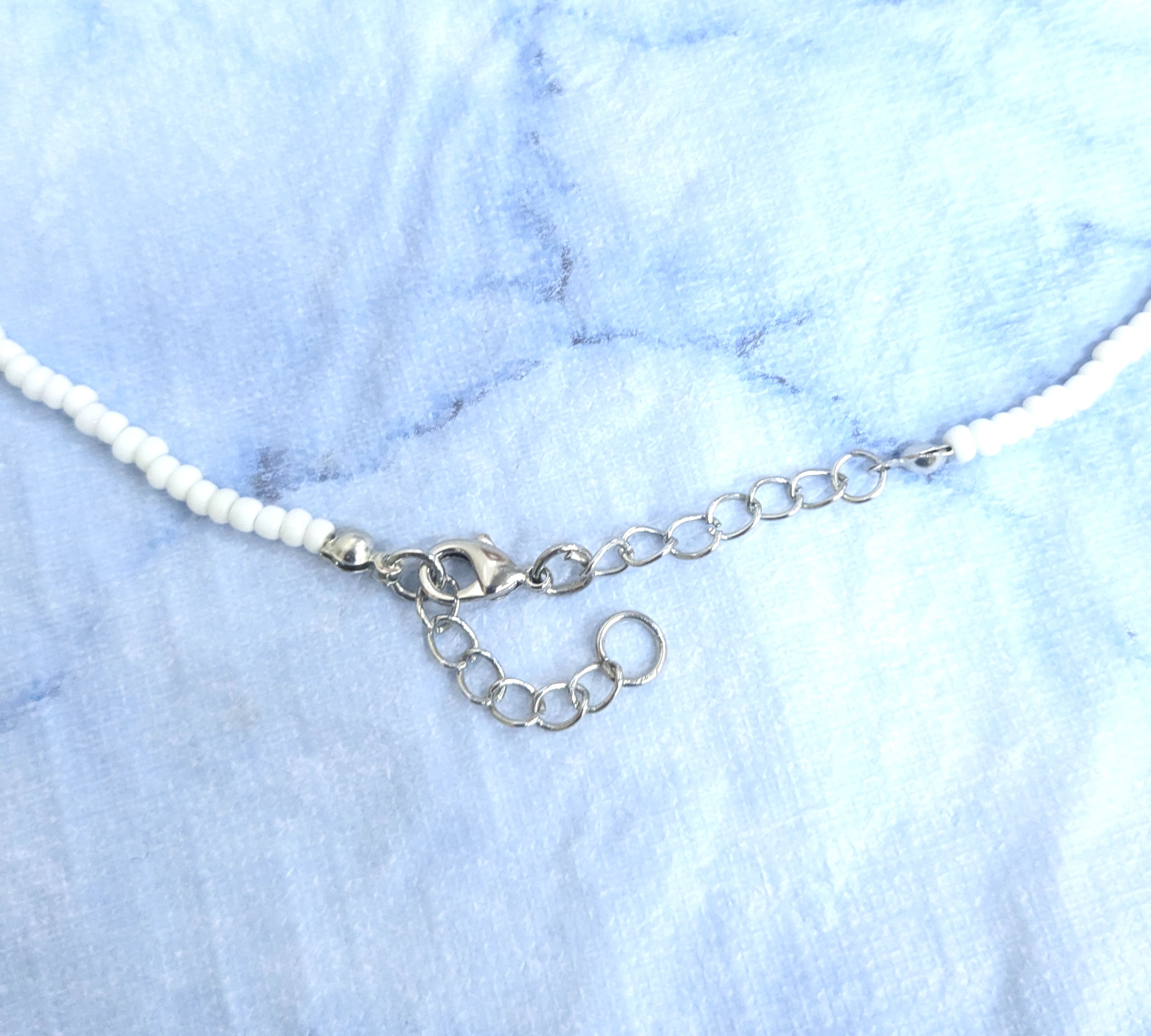 ハワイアンネックレス ホワイトシェルプルメリア& ウッドサークルプレート P-692