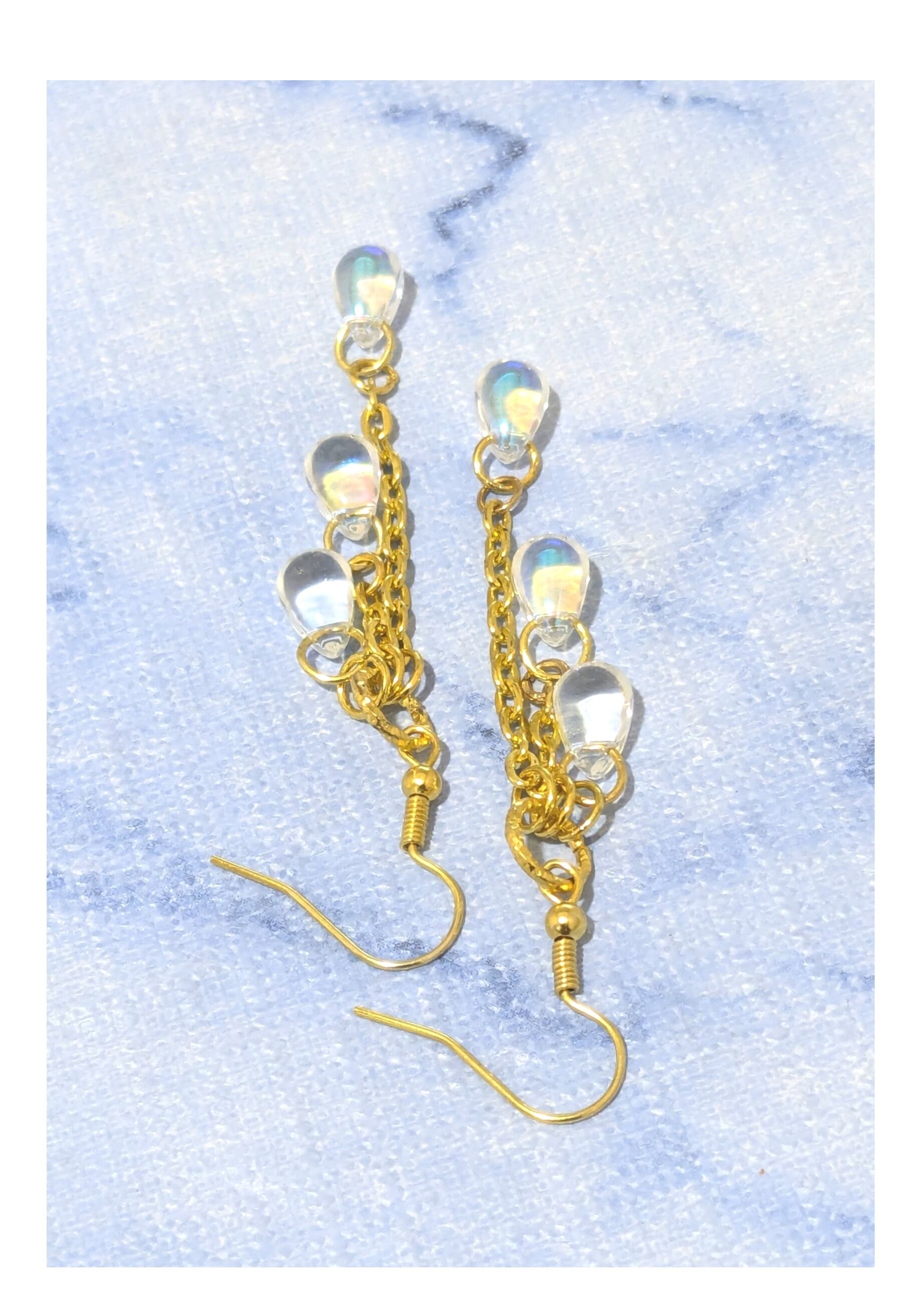 ファッションピアス クリアカラー クリスタル 雫3連デザイン A-374