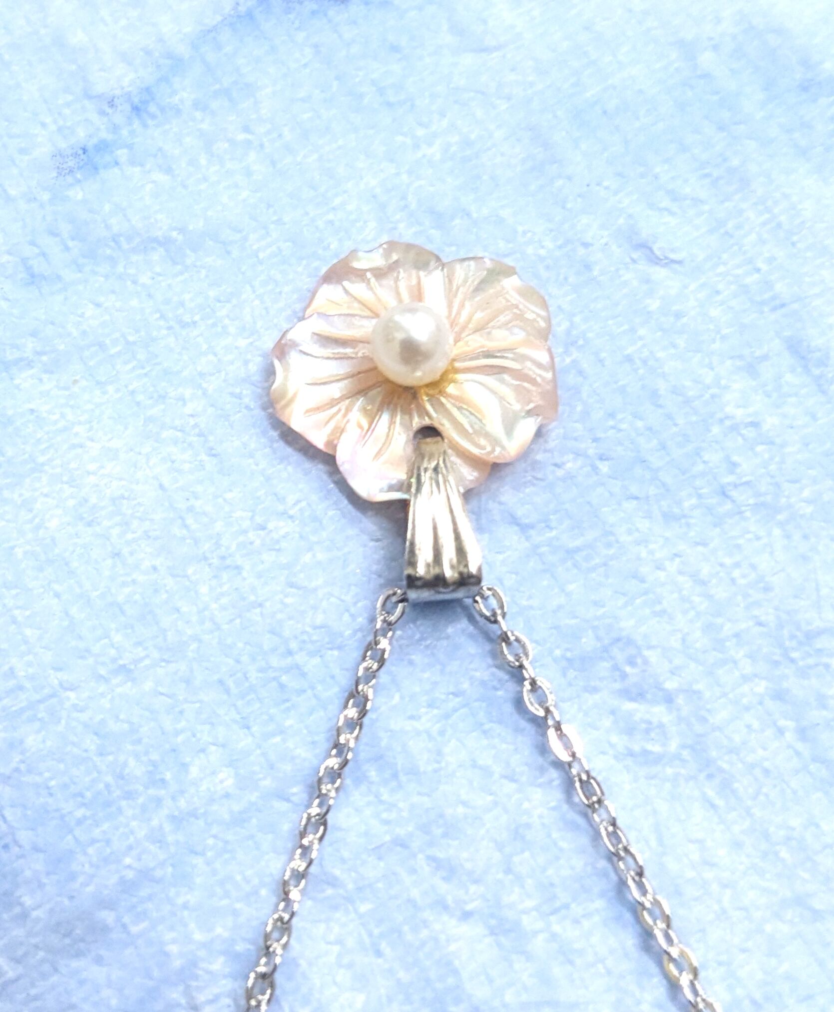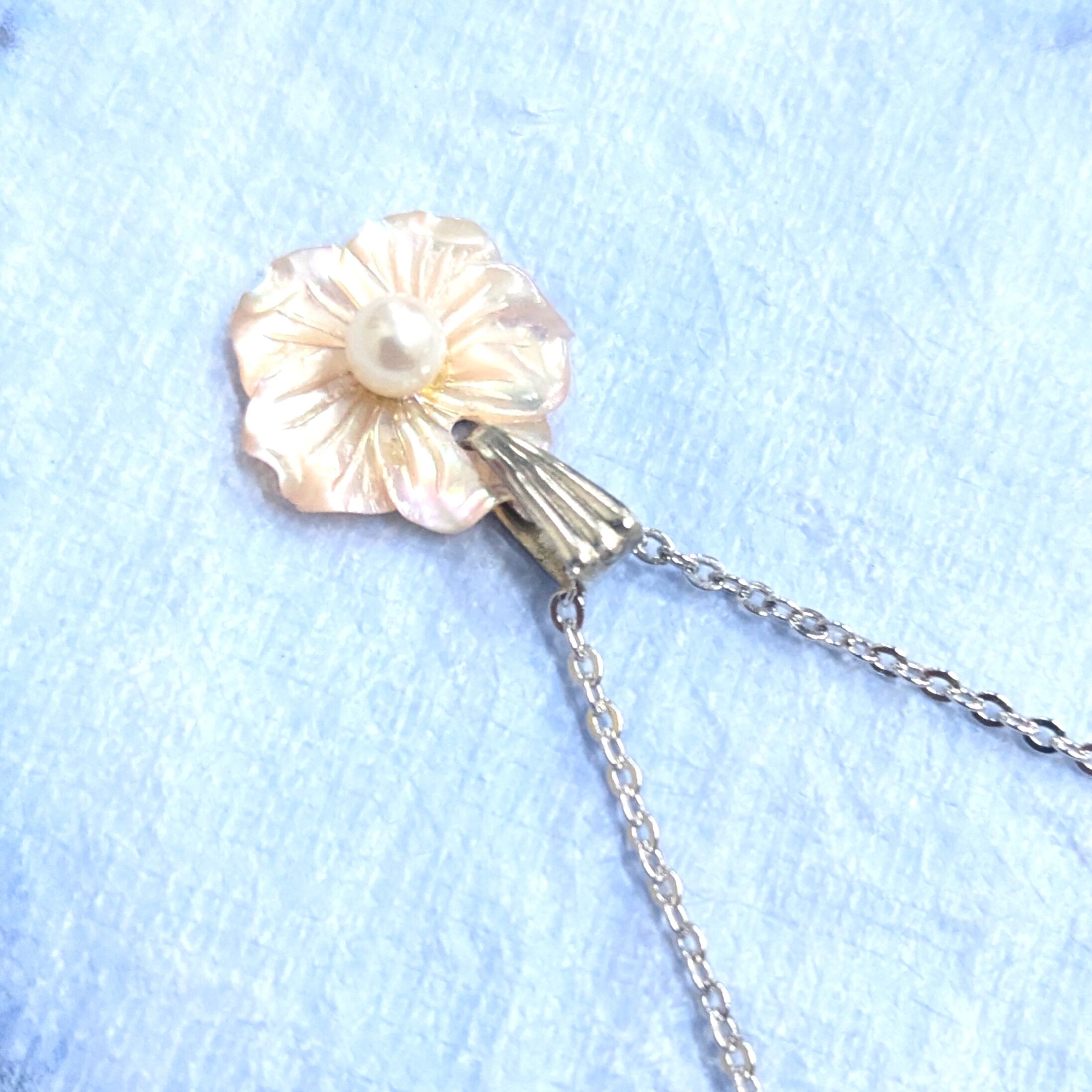ハワイアンネックレス ピンクパールシェル&パール フラワーデザイン S-389