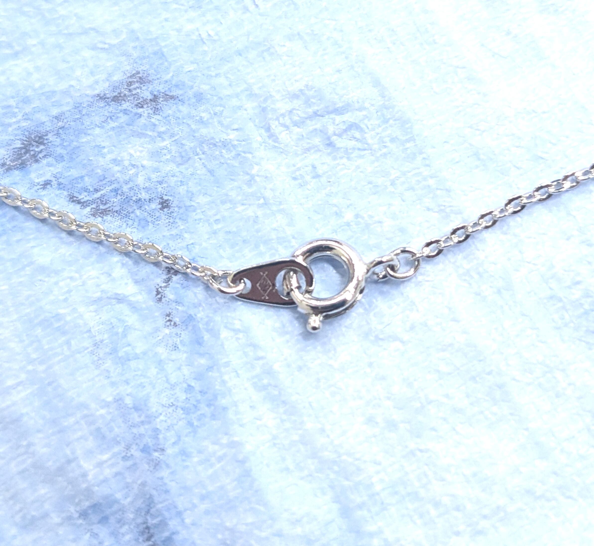 シルバーカラーの引き輪カン留め。