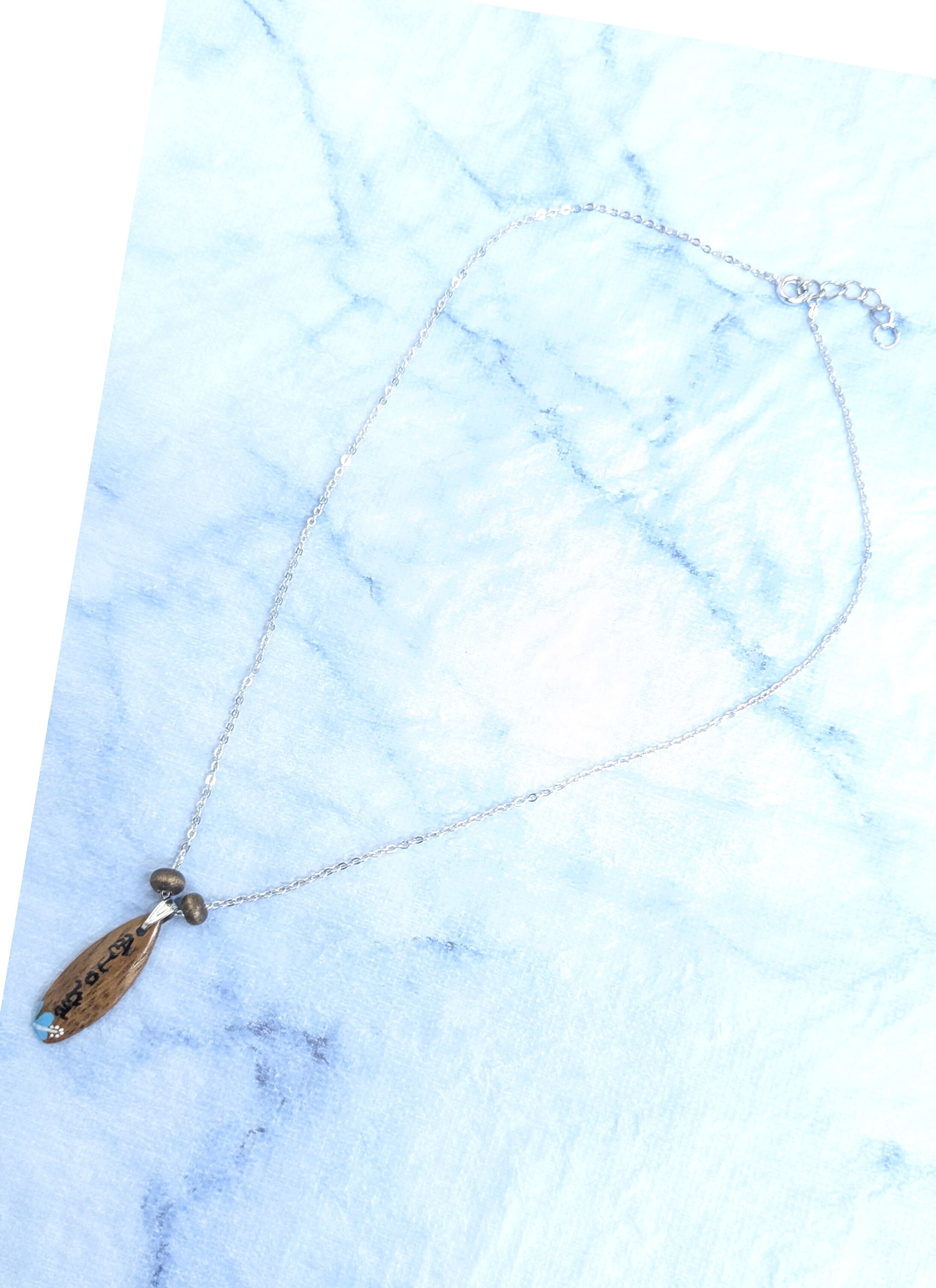 ハワイアンネックレス Aloha ロゴ入り ウッドサーフボード B-380