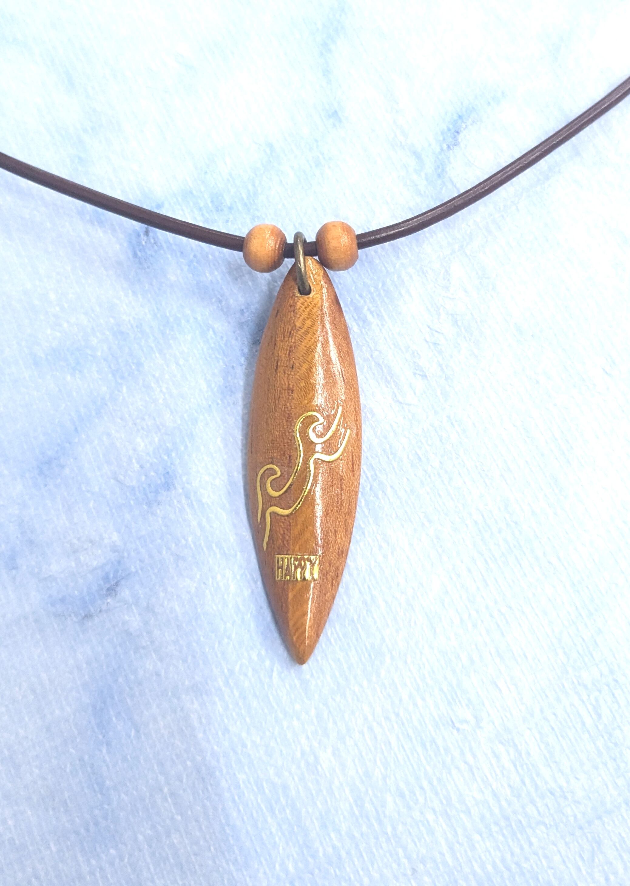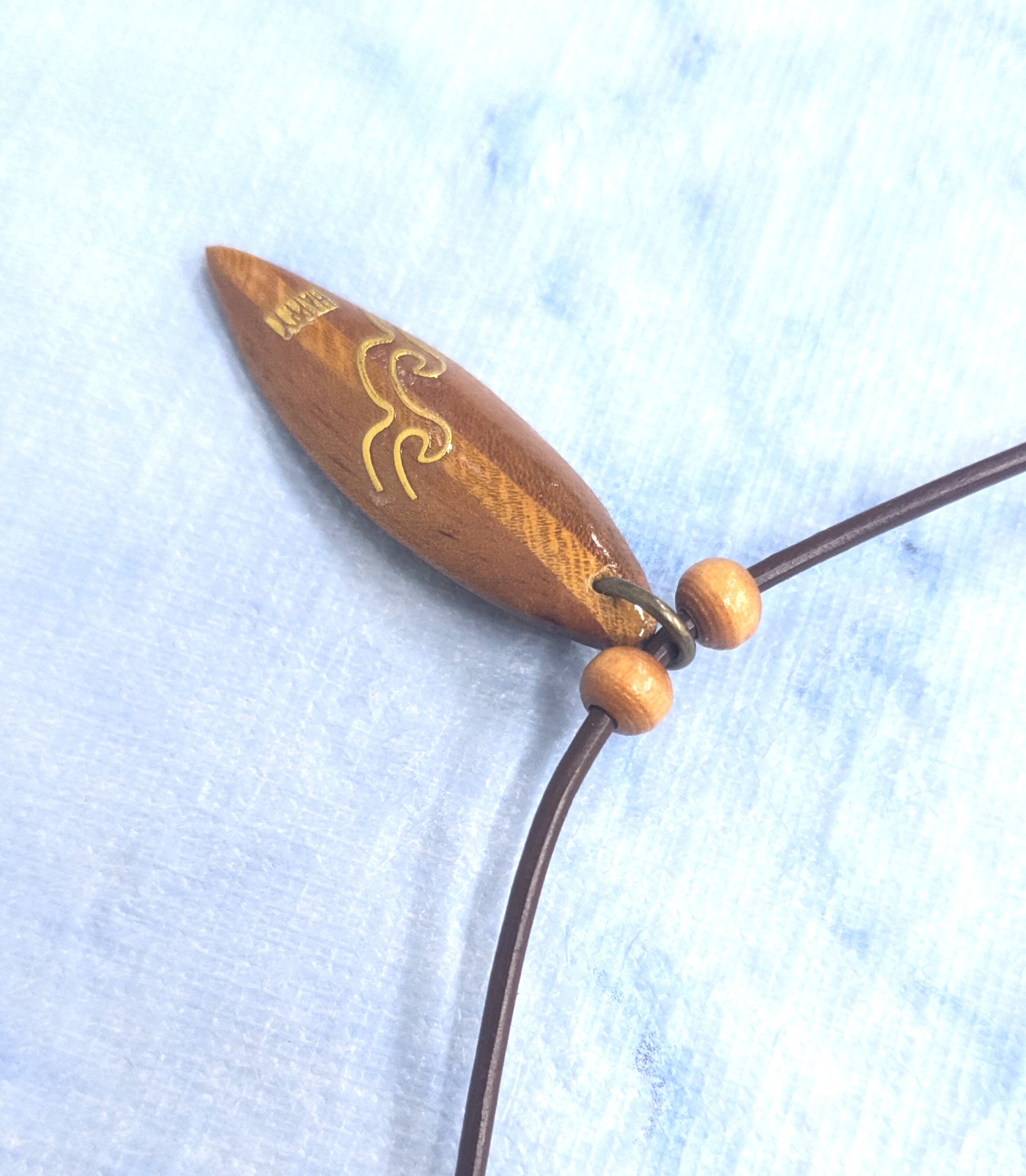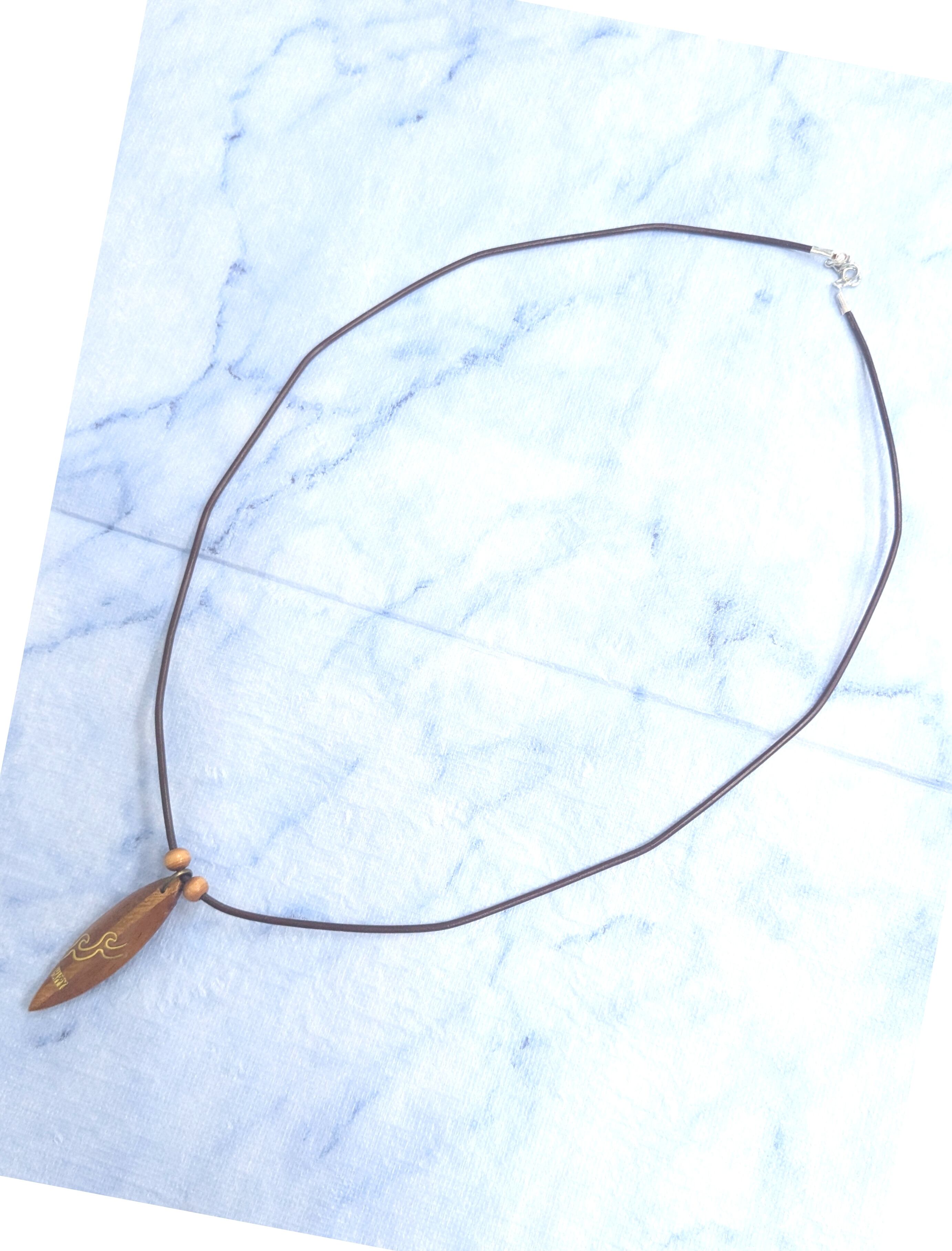 ハワイアンネックレス ウエーブラインデザイン 天然ウッドサーフボード B-381