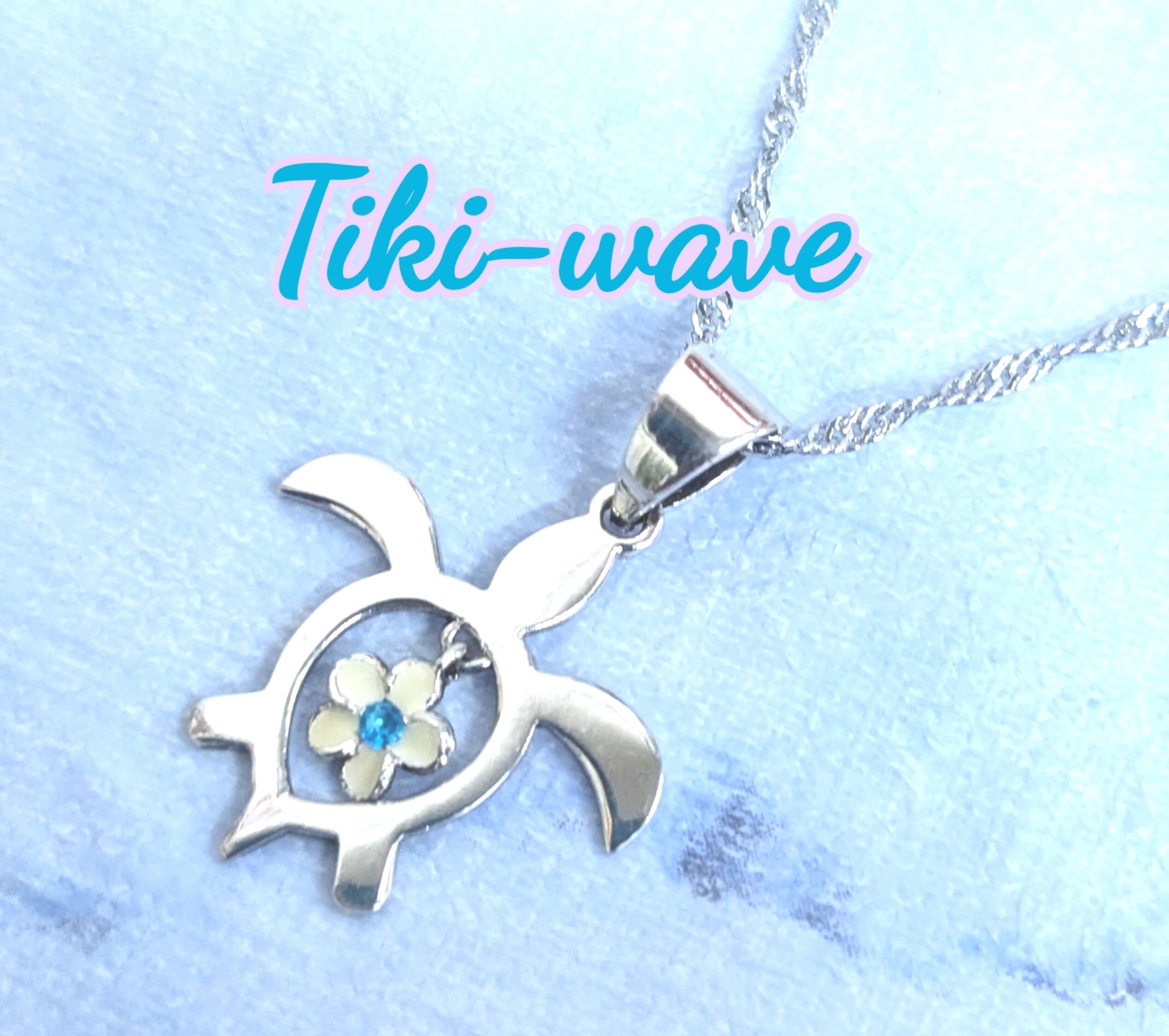 ハワイアンネックレス スターリングシルバー ホヌ&プルメリア CZ付き H-214