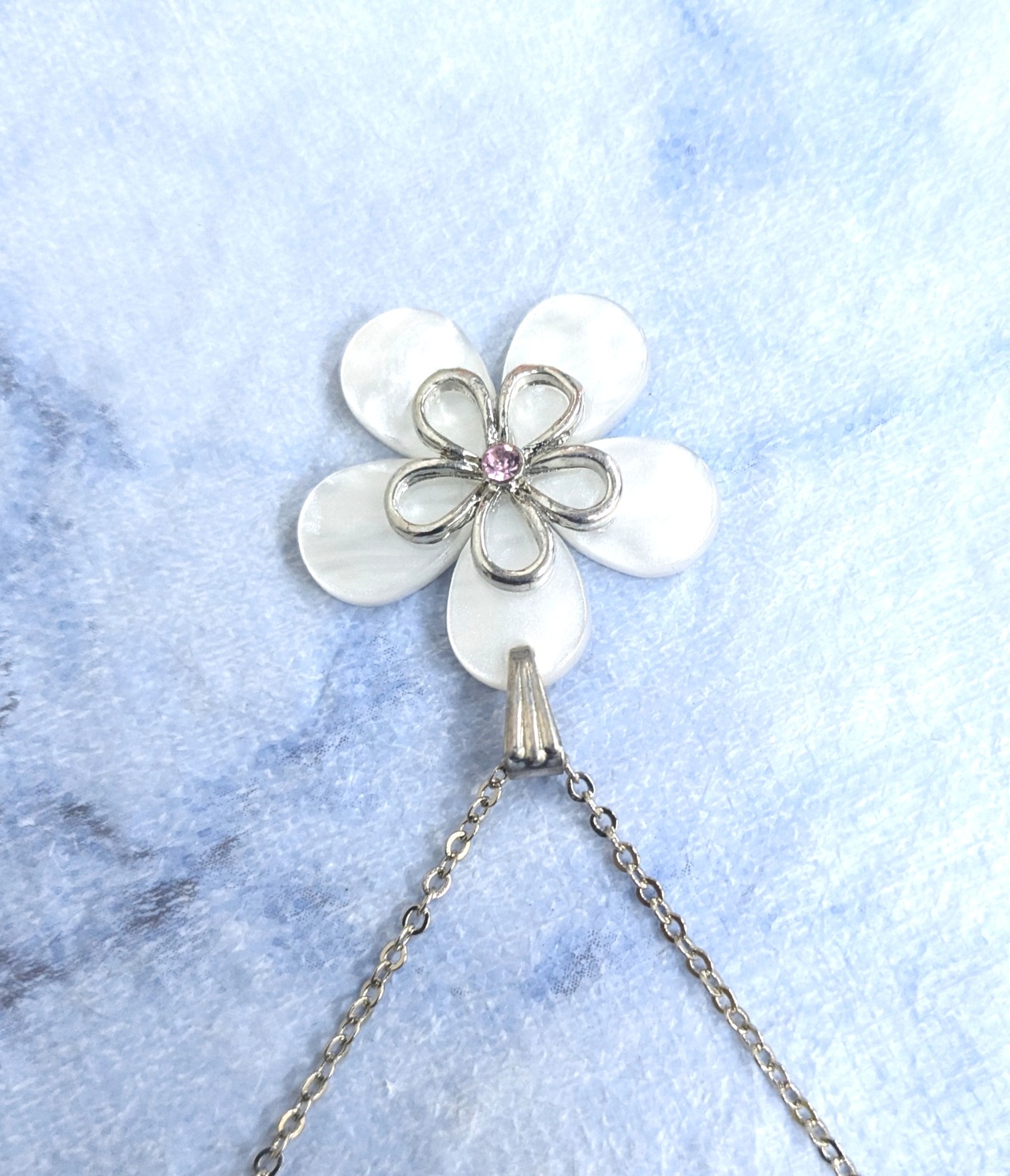 ハワイアンネックレス ホワイトパール&シルバーカラー フラワーデザイン S-390